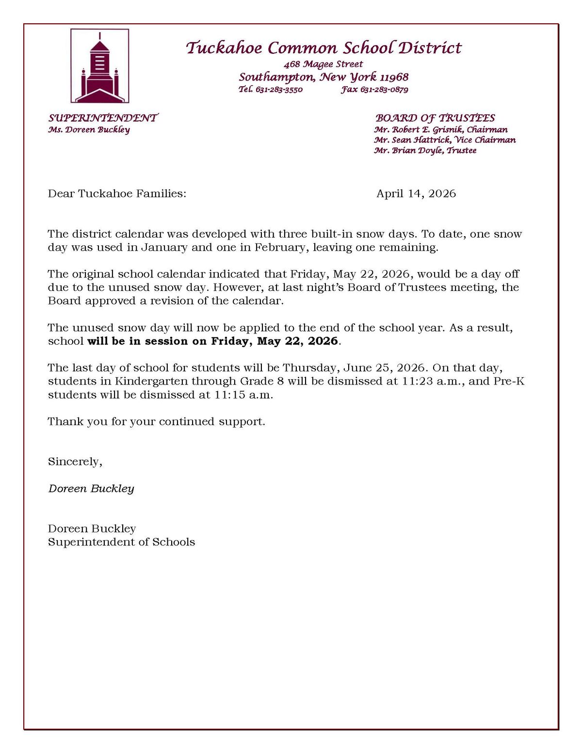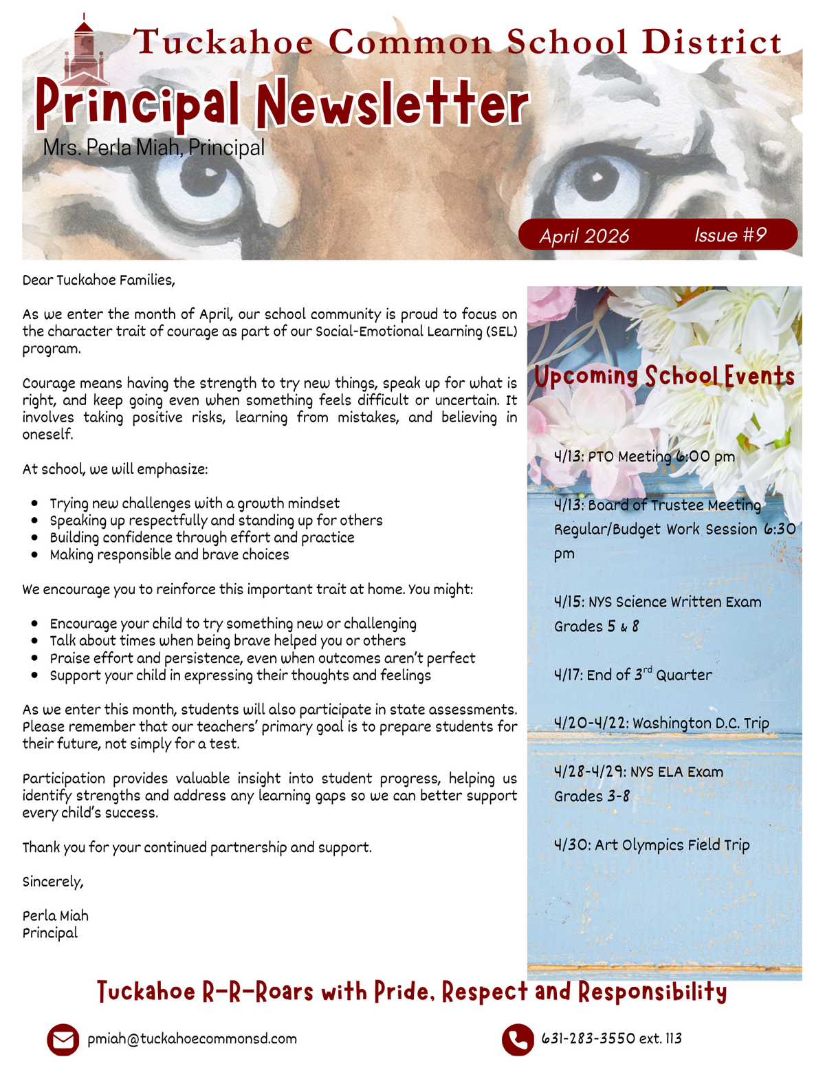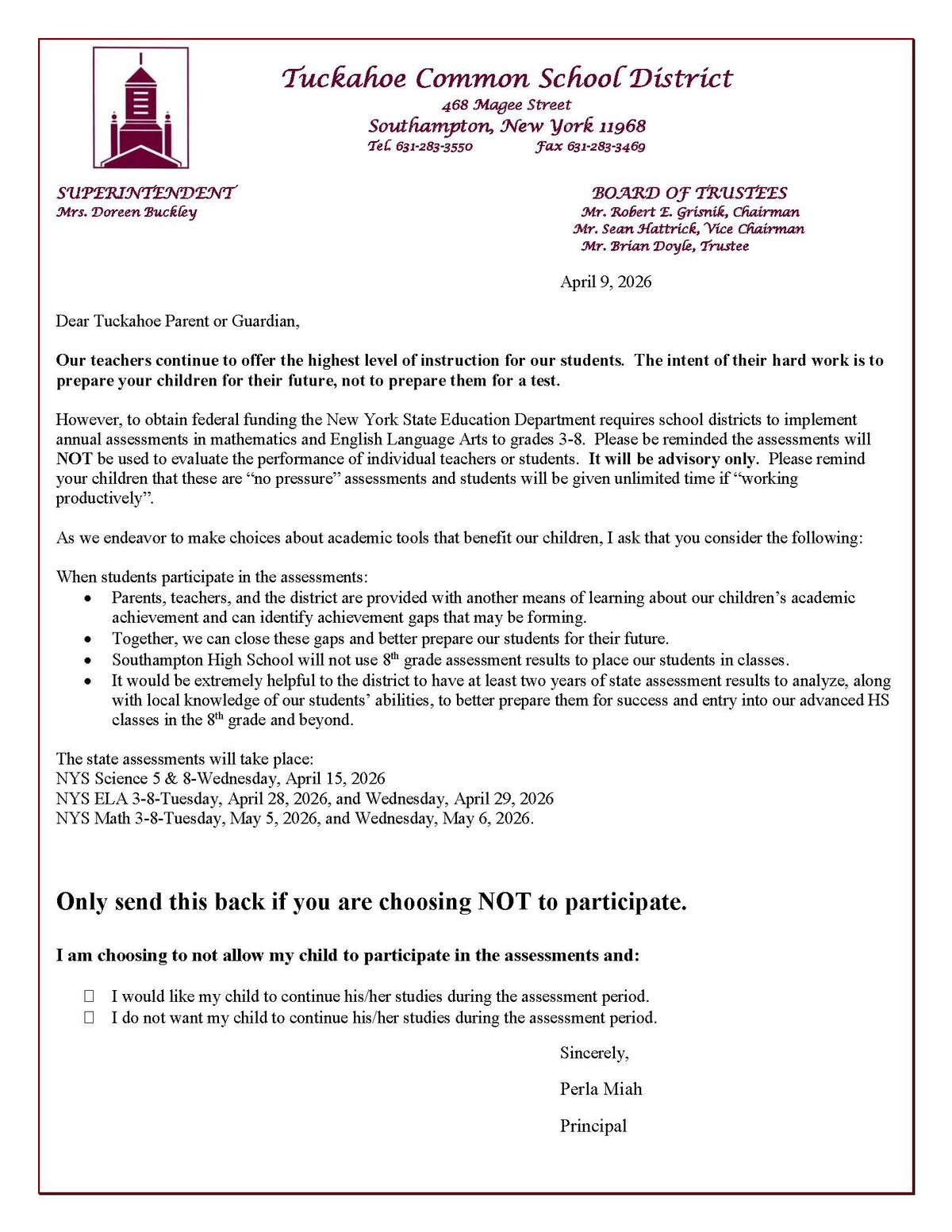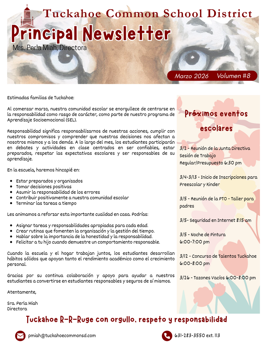 The registration packet may be obtained by clicking the button to the right or from the School's Front Office. These documents must be submitted at the time of registration or within two days of enrollment in order for the District to make a timely determination as to the student's entitlement to attend Tuckahoe School.