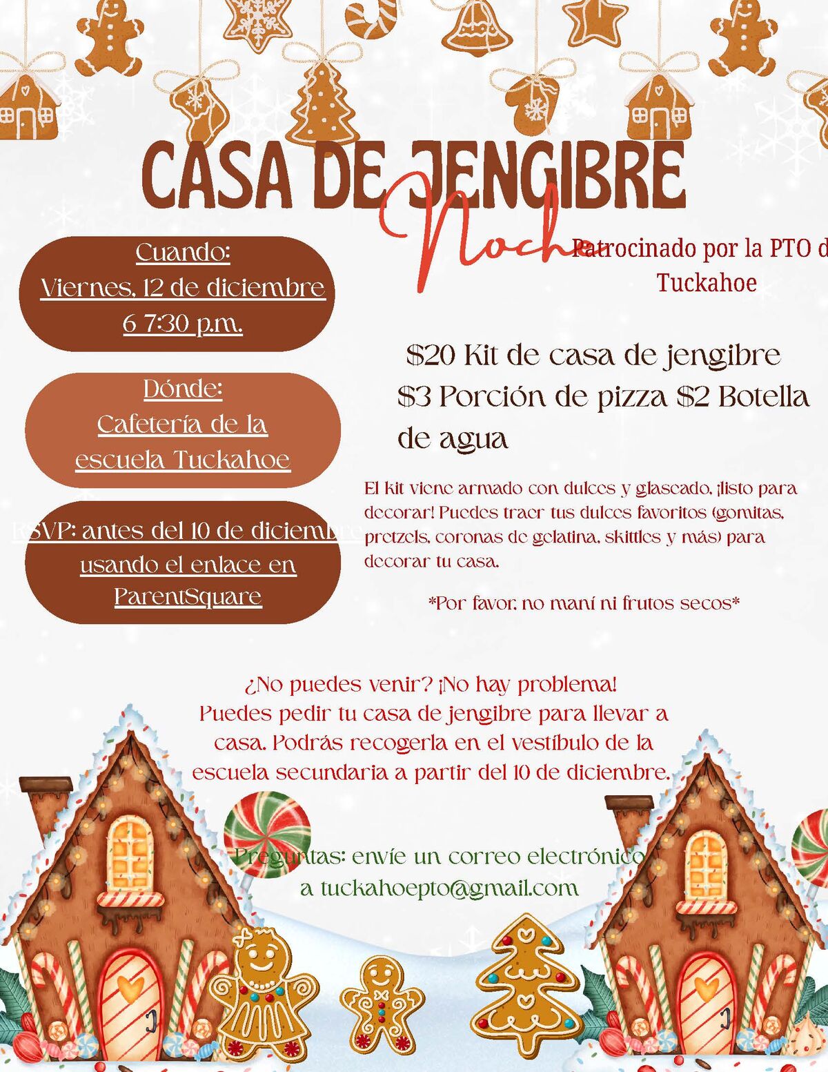 The PTO Gingerbread House Night is Friday December 12 6-7:30pm. Please use the link below to order your gingerbread house.